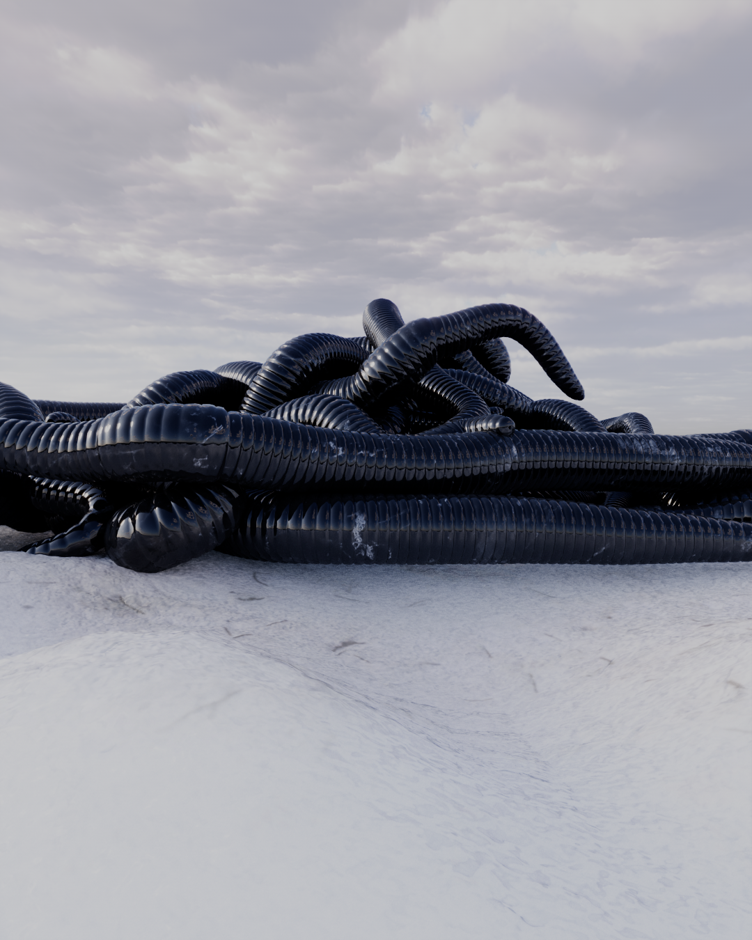 An unsettling organic presence rests beneath a cold winter light, evoking a sense of silent expansion. Designed to feel both natural and unfamiliar, the artwork balances fine-art photography aesthetics with procedural precision. Artificial intelligence was carefully implemented as a creative tool to extend the cinematic language of the piece, enriching atmosphere, enhancing material perception, and pushing the visual narrative beyond traditional rendering.
